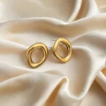 These studs feature an organic, free-form oval loop inspired by natural molten textures—smooth, fluid, and uniquely sculpted.