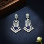 Material & Color: Premium-quality alloy base with high-grade American Diamond (Cubic Zirconia) stones in a radiant silver finish, accented with a rich sapphire-blue crystal centerpiece.