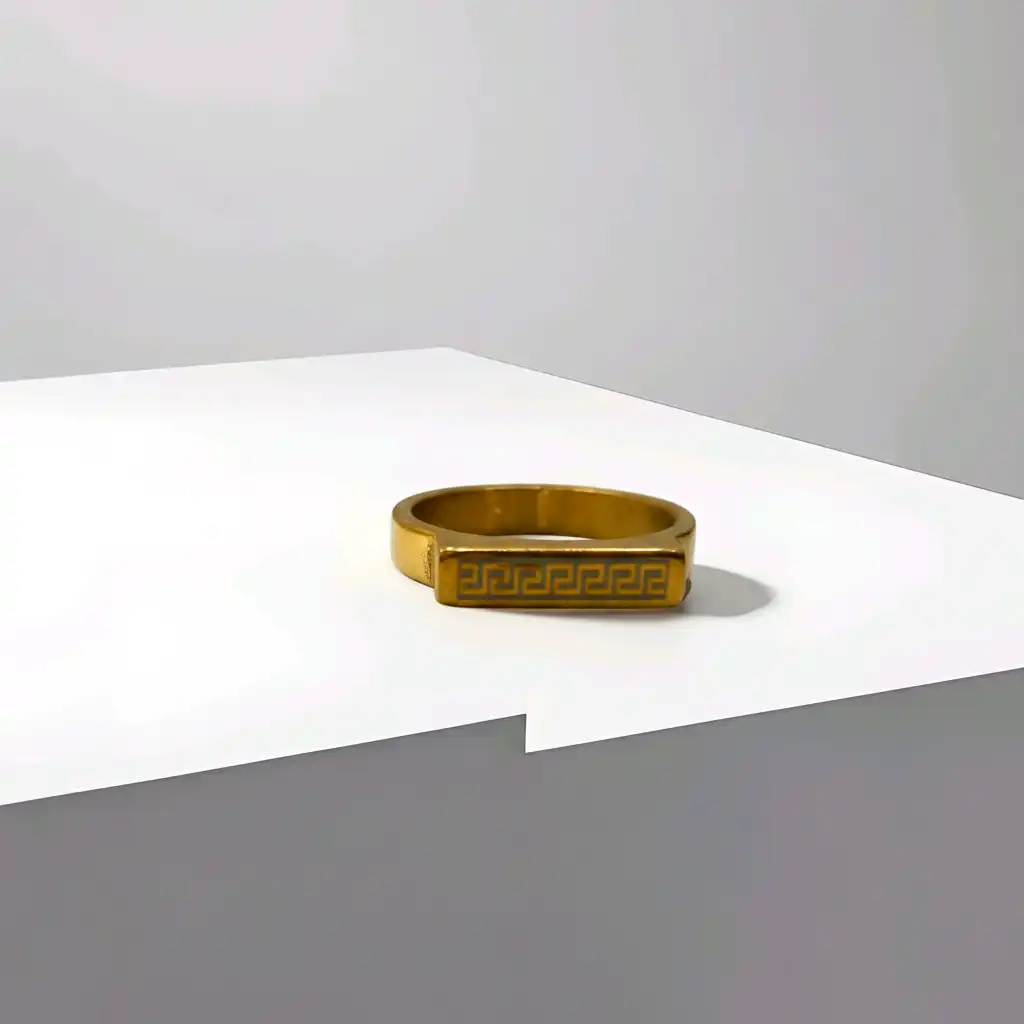 Get lost in timeless design with the ANTI-TARNISH Golden Maze Ring. This sleek band features subtly engraved geometric patterns that lend it a modern, maze-like appeal. Crafted in gold-toned stainless steel, it’s lightweight, tarnish-resistant, and unisex.