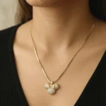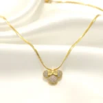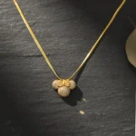 Add a touch of cute luxury to your jewelry collection with our Golden Minnie Charm Pendant. Designed with a sparkling stone-studded charm and an elegant bow detail, this pendant beautifully blends playful vibes with premium elegance. Perfect for those who love a little sparkle with a statement look.