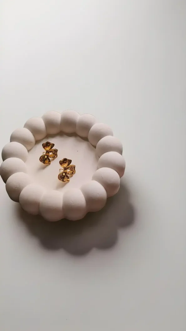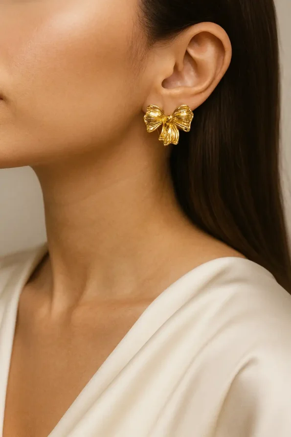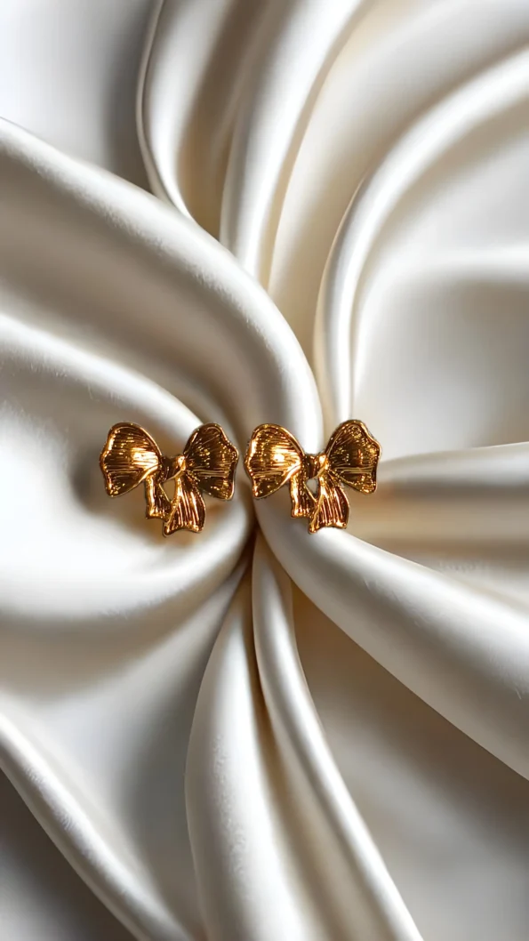 Golden bow studs with a playful shine.