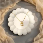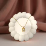 The pendant frame has an organic, fluid shape, giving it a soft, sculpted look that feels modern, clean, and premium. Its lightweight finish makes it perfect for everyday wear, yet polished enough for special occasions.
