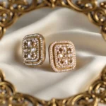 Style: Square stud earrings with a floral kundan pattern