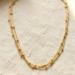 Material & Color: Anti-tarnish plated alloy with fine chain layers and polished bead detailing in a warm gold finish.