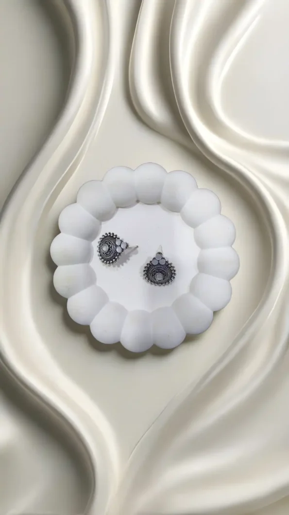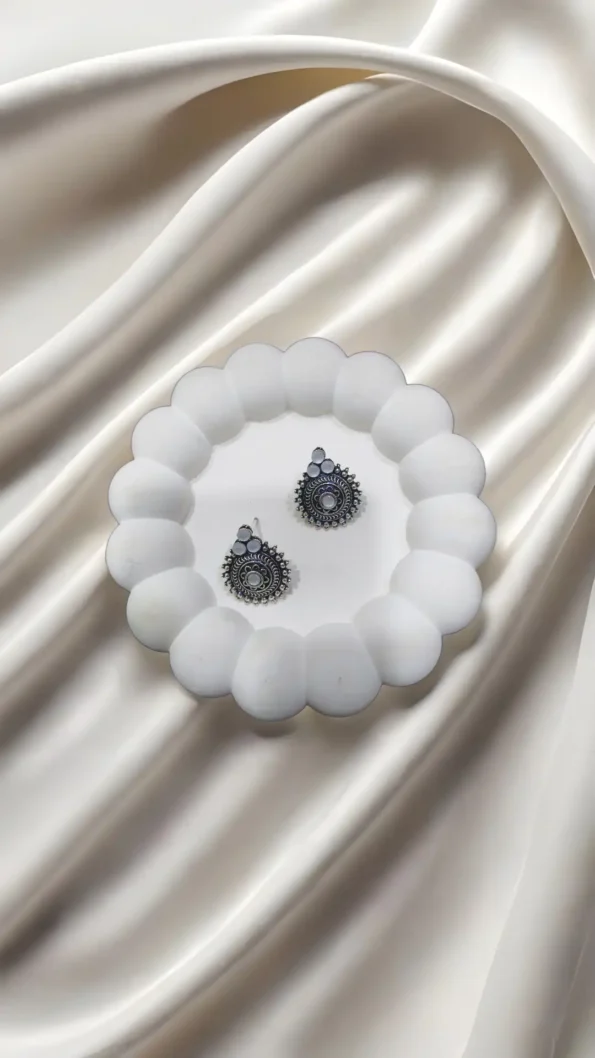 MINI MANDALA STUDS – OXIDISED WITH WHITE BEADS