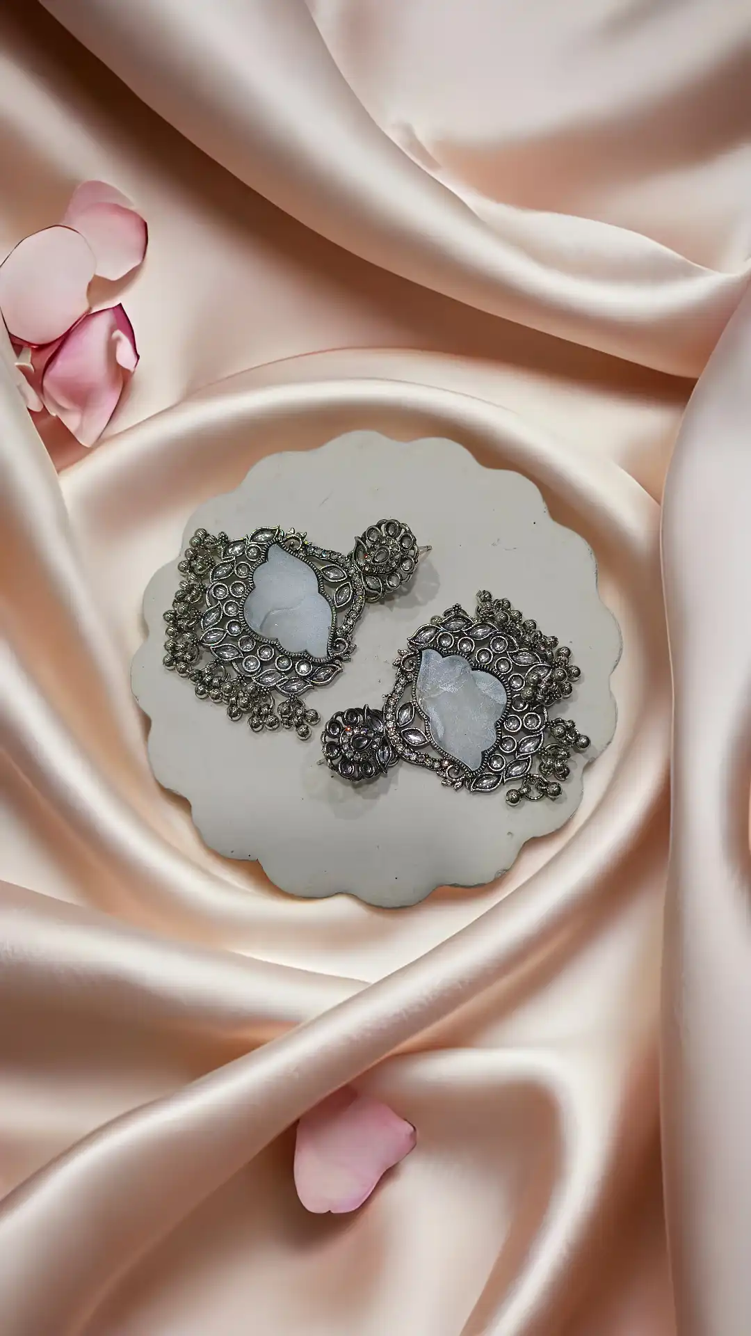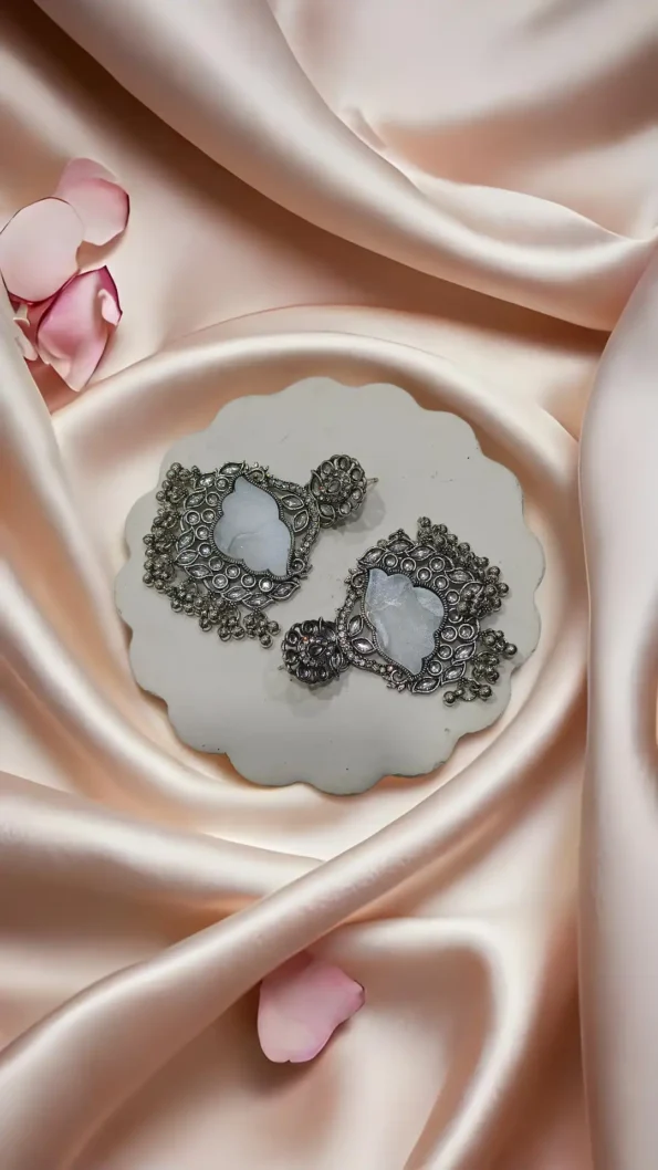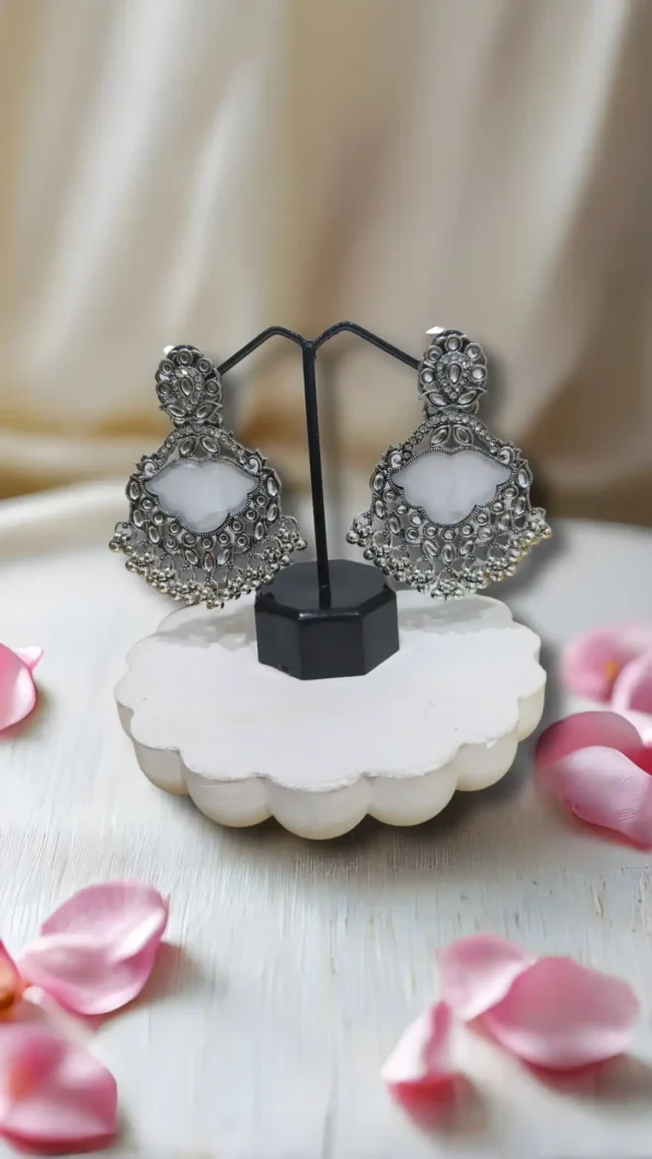Pair with a silk saree, lehenga, or embroidered anarkali. Opt for a low bun or a classic braid to show off the earrings. Add a small bindi, kohl-rimmed eyes, and oxidised bangles or a choker for a stunning traditional look.