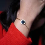 The Noir Medallion Bracelet embodies modern sophistication with its minimal yet striking design. The circular black enamel charm sits elegantly on a delicate gold chain, creating the perfect fusion of class and confidence. Lightweight and versatile, it transitions seamlessly from daywear to evening glam.