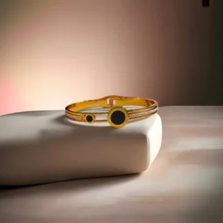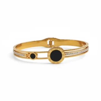 Made from premium gold-plated brass, featuring a sleek black enamel centerpiece. The blend of lustrous gold and bold black gives it a refined, high-end appeal.
