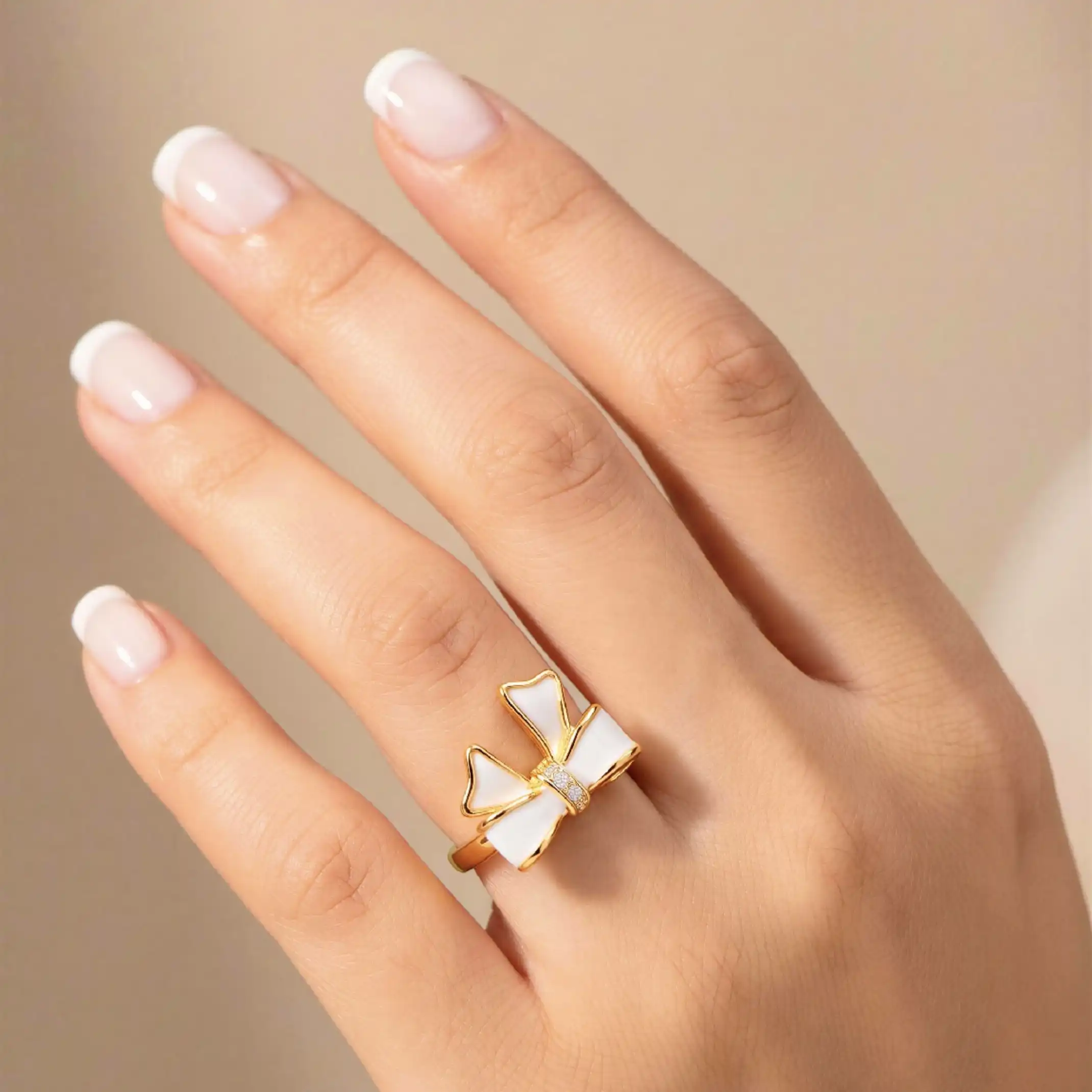 Styling Tips: Style it solo as a cute statement piece or pair it with dainty stackable rings for a soft, luxe look. Perfect with pearl studs, bow motifs, pastel outfits, dresses, and even ethnic wear for a playful,l feminine touch. Looks especially beautiful with French tips and minimal bracelets.