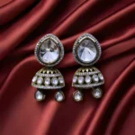 Style: Traditional jhumka with bold stone top and dome design