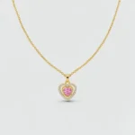 Elevate your everyday elegance with our ROSY HEART RADIANCE NECKLACE, featuring a stunning pink stone set at the center. The pendant is framed with a delicate halo of micro-pave CZ diamonds, adding a luxurious sparkle while keeping the design soft and feminine.