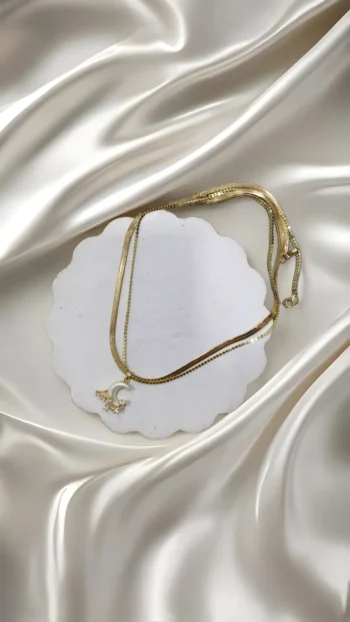 Shine like the night sky with this dreamy dual-layer gold necklace featuring a dainty crescent moon and star charms. Perfect for adding a soft, celestial touch to your everyday or evening looks.