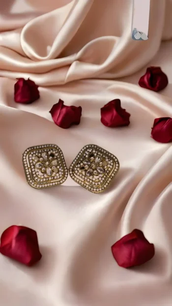Square-shaped studs crafted with a vintage kundan floral cluster, framed in double pearl outlines for a regal yet minimalist touch.