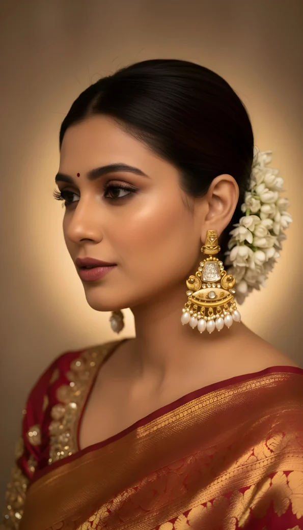 Golden dome-shaped jhumkas adorned with intricate carvings and pearl drops, inspired by the glow of evening traditions. |