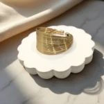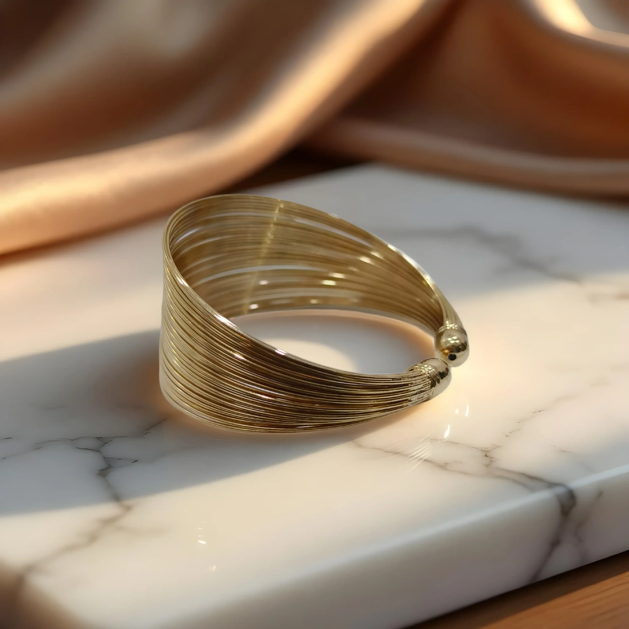 The Silken Metal Cuff Bracelet is the epitome of contemporary luxe. With sleek lines and a wrapped texture finish, this statement piece brings subtle power and timeless class to your wrist.