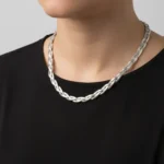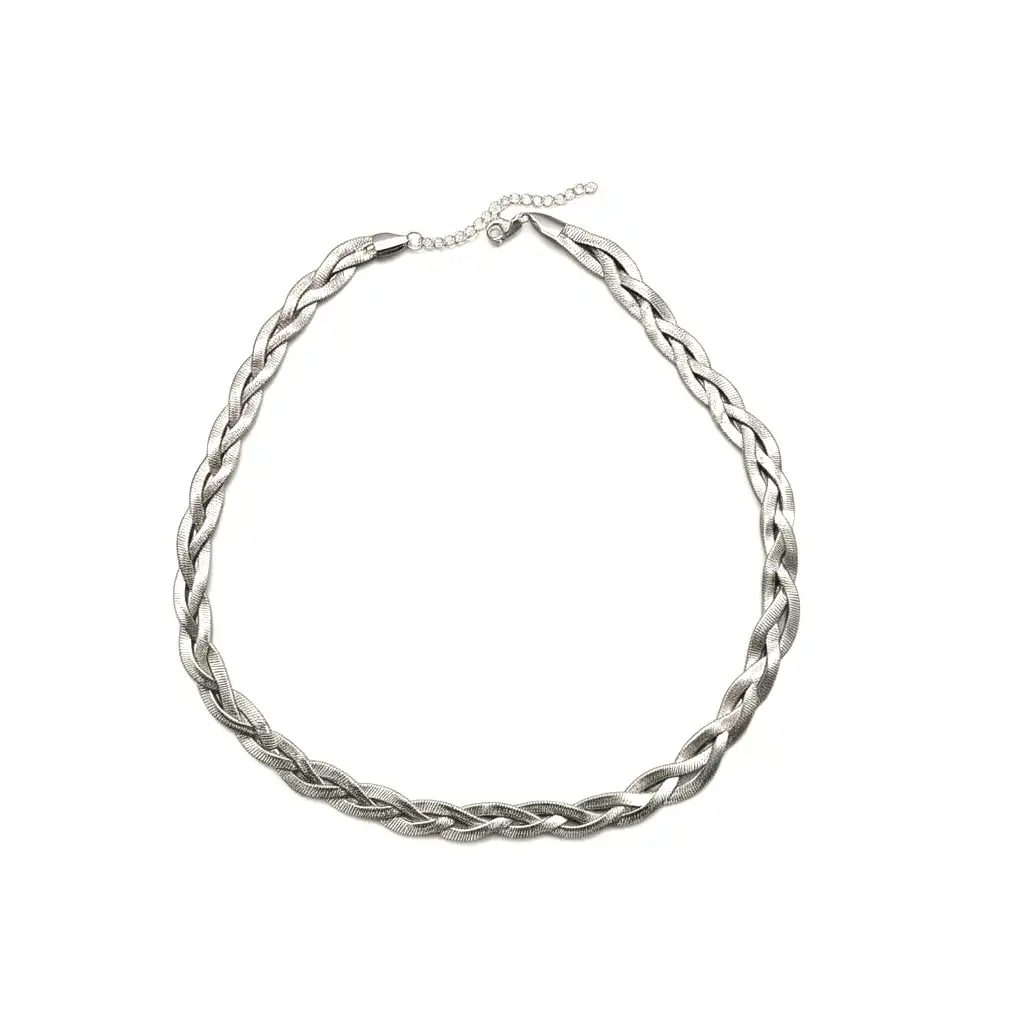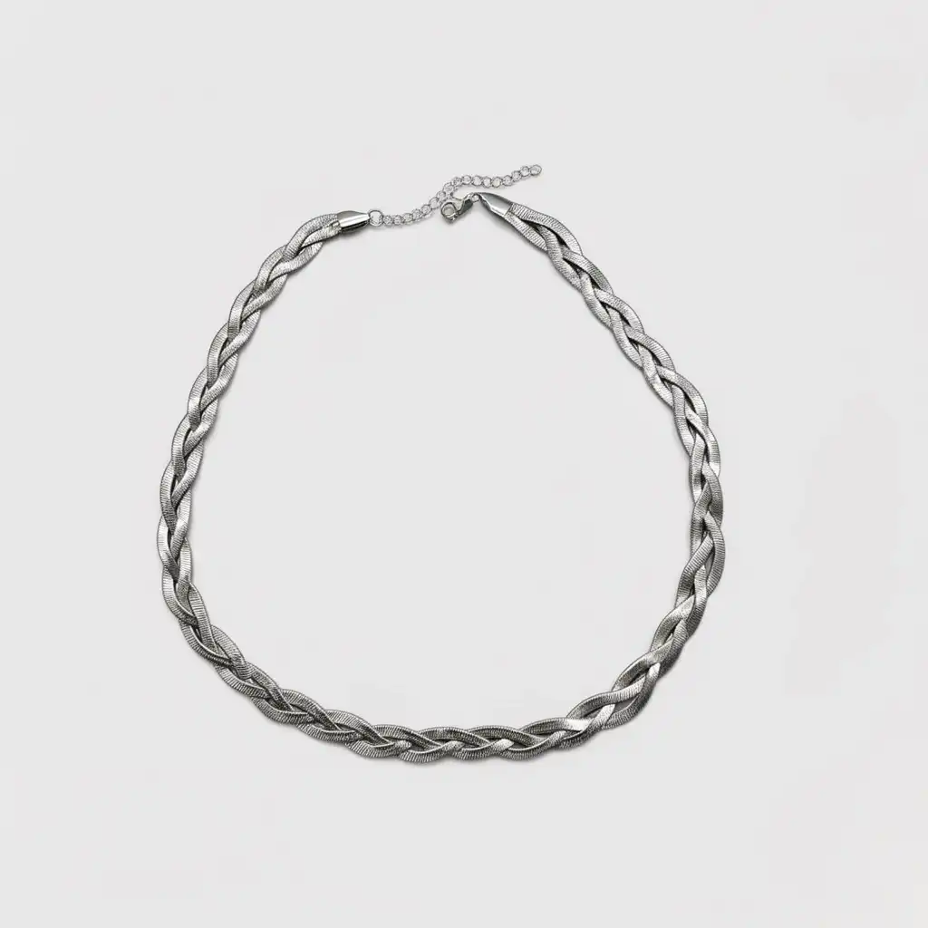 Elevate your everyday style with the Silver Braided Chain, a timeless piece that beautifully blends sophistication and simplicity. Crafted with precision, this chain features a unique braided design that adds texture and dimension to the classic silver look. The interwoven strands reflect light effortlessly, giving it a subtle yet striking shine that complements any outfit — from casual chic to evening glam. Made from high-quality material, this chain is lightweight, durable, and comfortable for daily wear. Its minimalist yet intricate style makes it perfect for layering or wearing solo as a statement of understated elegance.