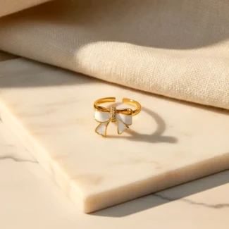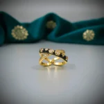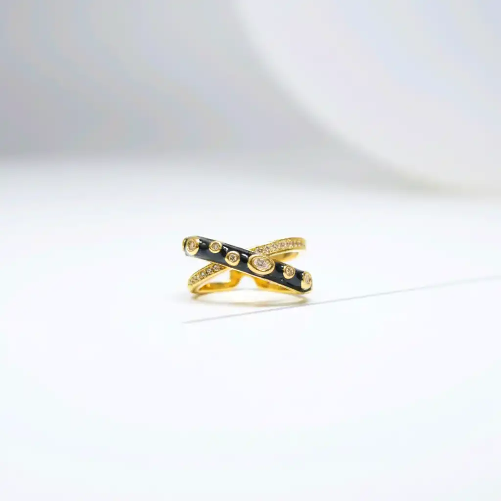 A bold blend of elegance and edge, this ring features a rich black enamel finish beautifully contrasted with delicate golden detailing. The intricate stud accents add a subtle sparkle, making it perfect for both everyday glam and statement styling. Designed to stand out without trying too hard — this piece is all about effortless luxury.