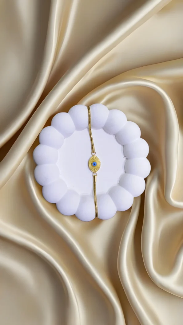 An evil eye symbol with a fashion twist, the Sunspell bracelet features a radiant charm with a central evil eye to ward off negativity. Stylish and spiritual in one piece.