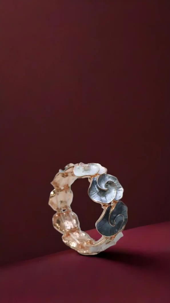 Delicate rose-gold bracelet with enamel leaf details, adding a soft feminine charm to any look.
